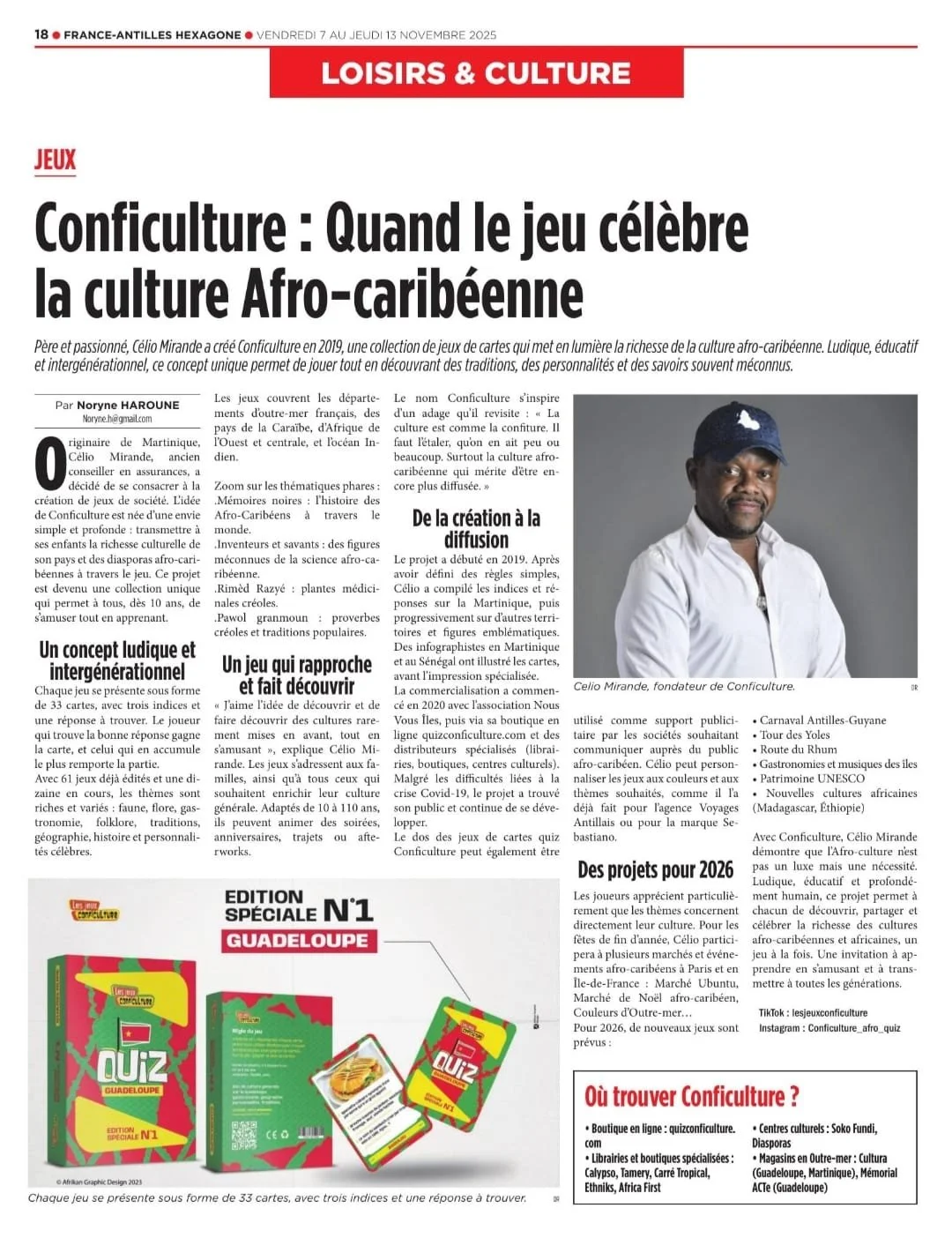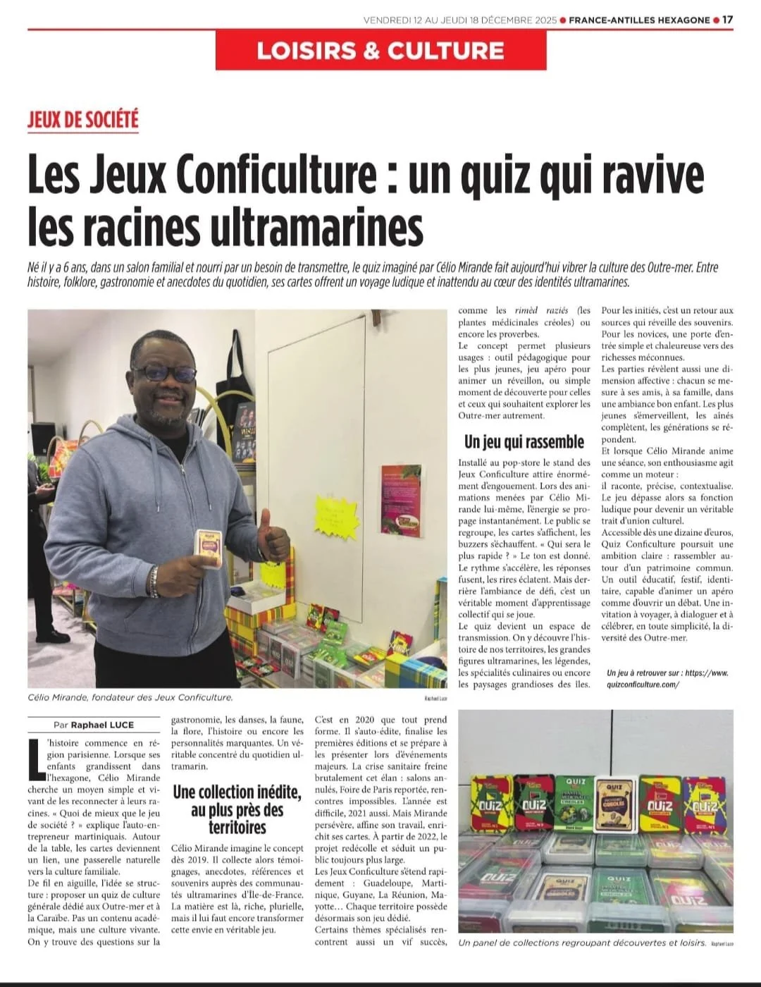 EMISSION OUTREMER LA 1ERE 06/12/2019 : https://la1ere.francetvinfo.fr/conficulture-jeu-mieux-connaitre-outre-mer-778879.html